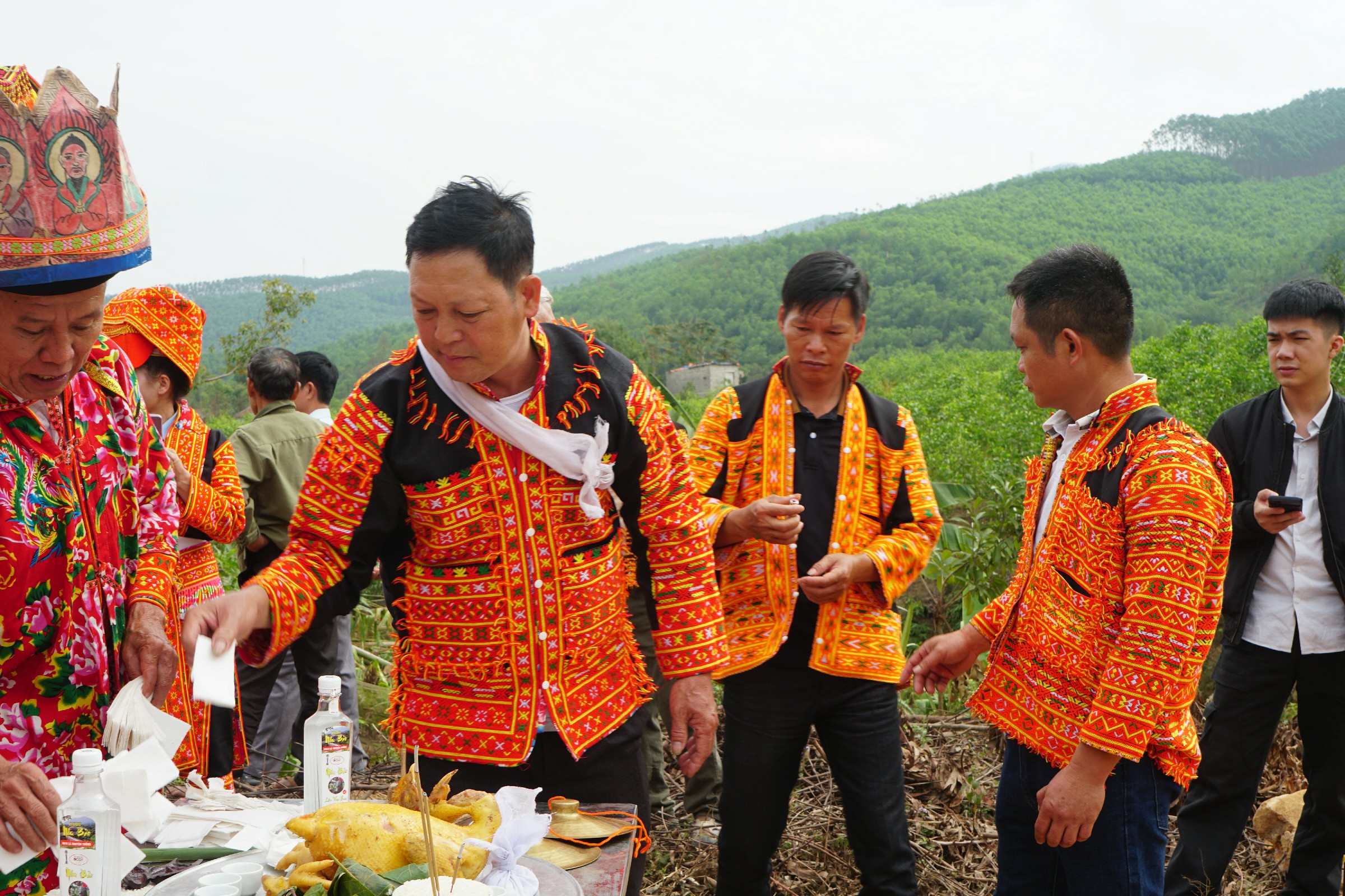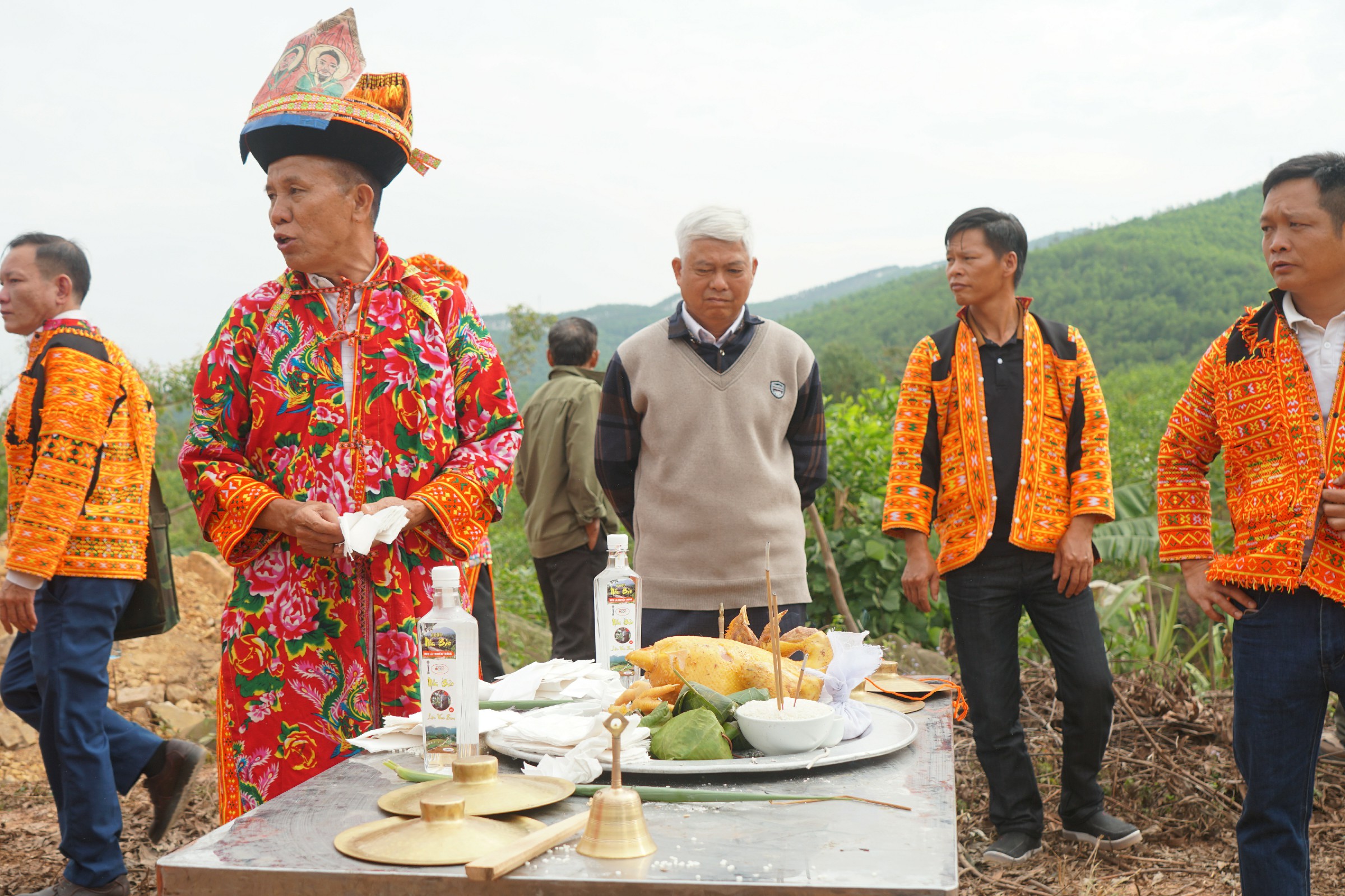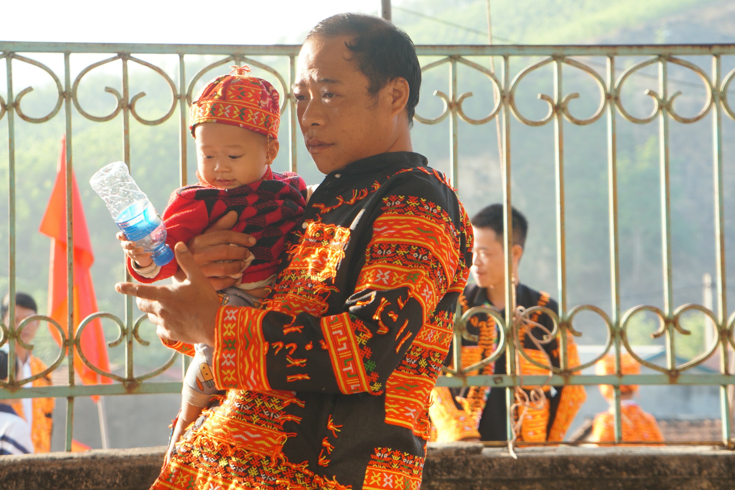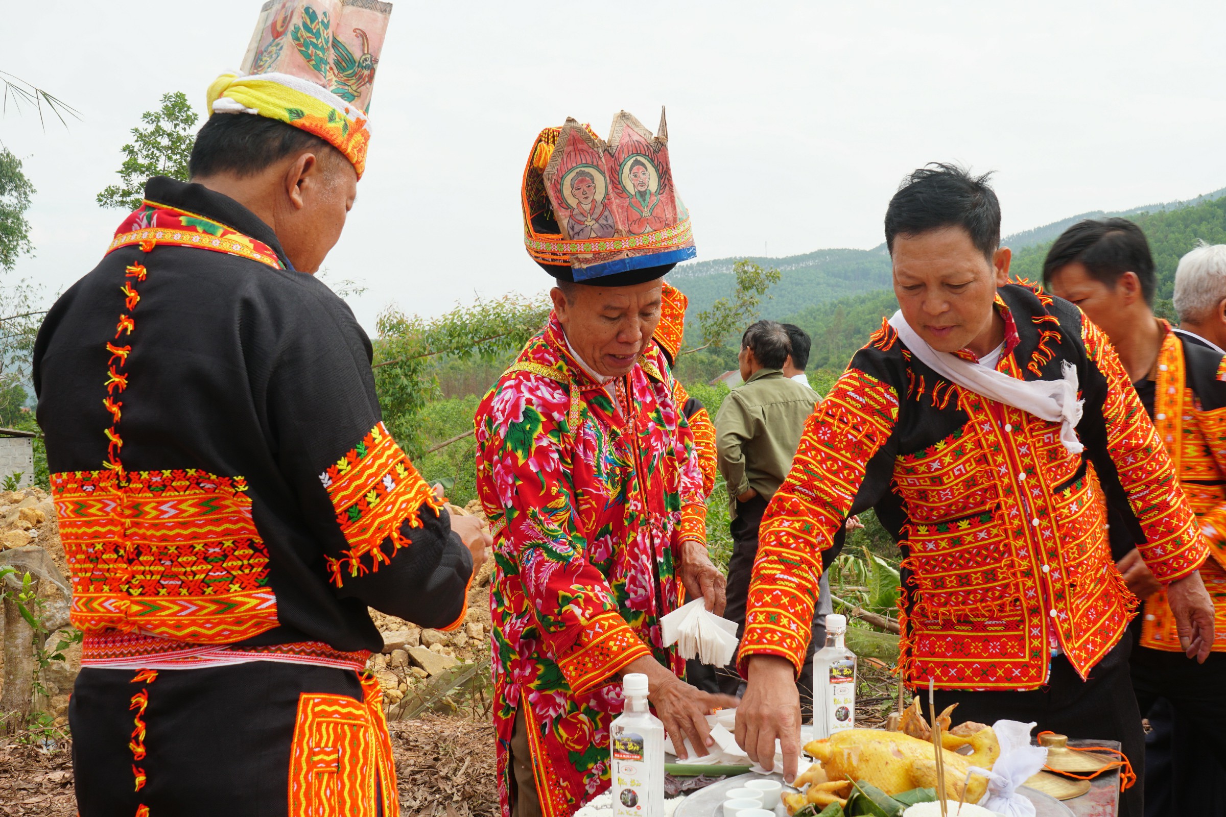Các thầy vừa khấn vừa đánh trống, đánh chiêng, thổi kèn gọi các thần về phù hộ cho con cháu, dân làng được an khang, thịnh vượng. Sau đó thầy cả xin phép tổ tiên thổi 4 tiếng tù và mời Ngọc Hoàng và khấn trình bày việc làm lễ cầu mùa, xin Ngọc Hoàng chứng giám và phù hộ, xin đưa các vị thần ở địa phương lên thiên đình, báo cáo việc lễ cầu mùa sau một năm vất vả.