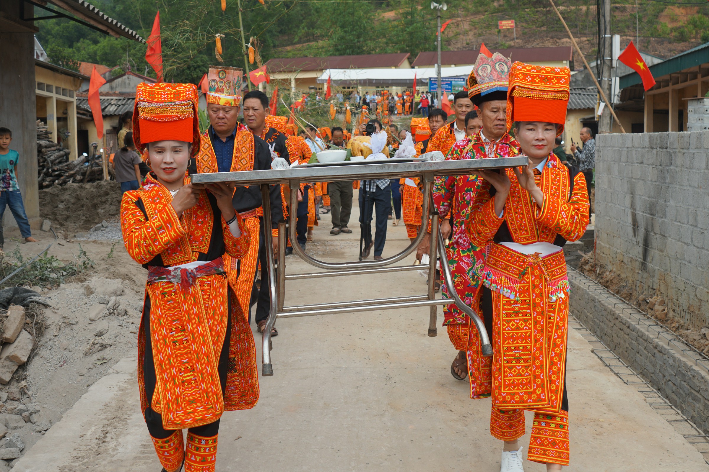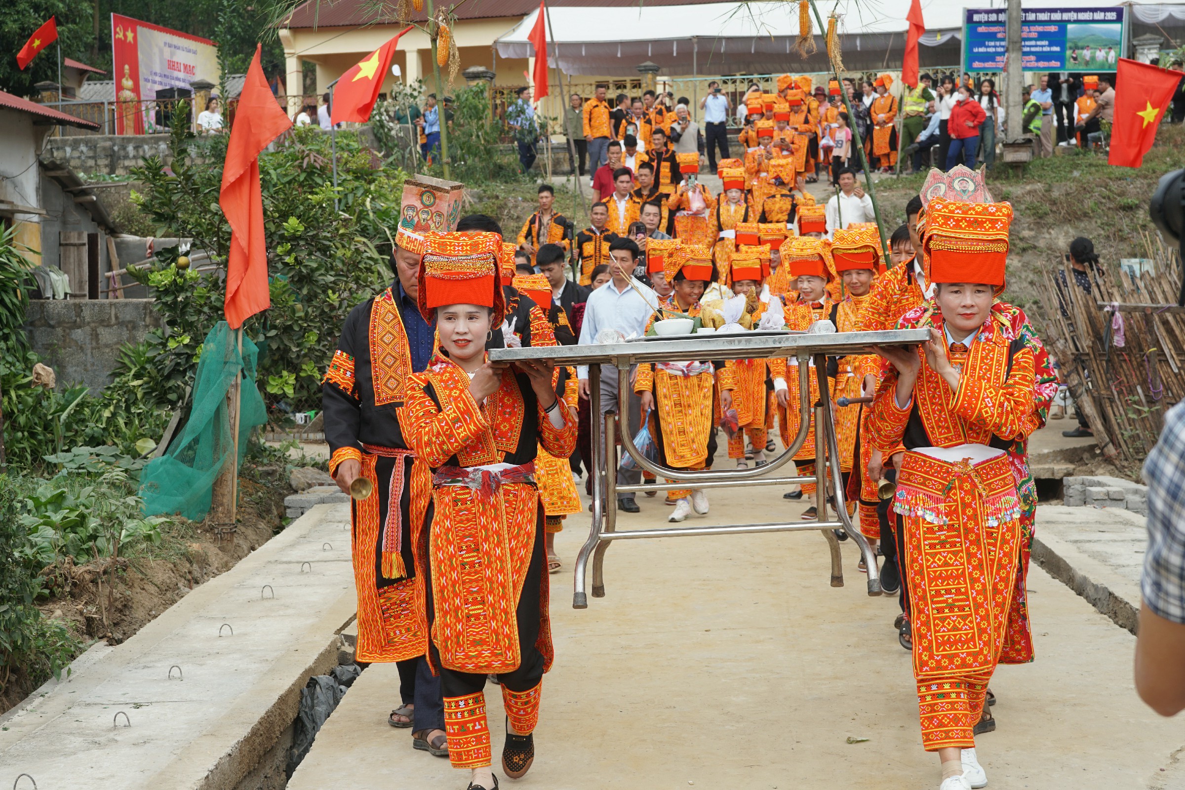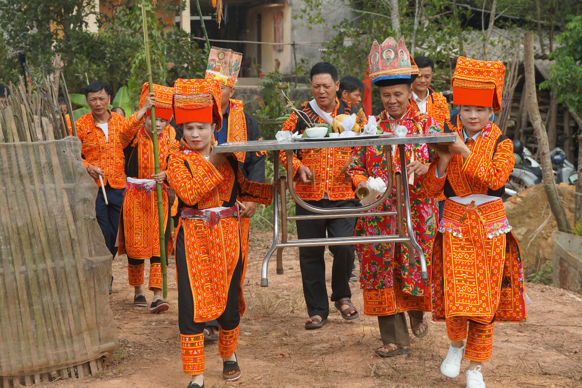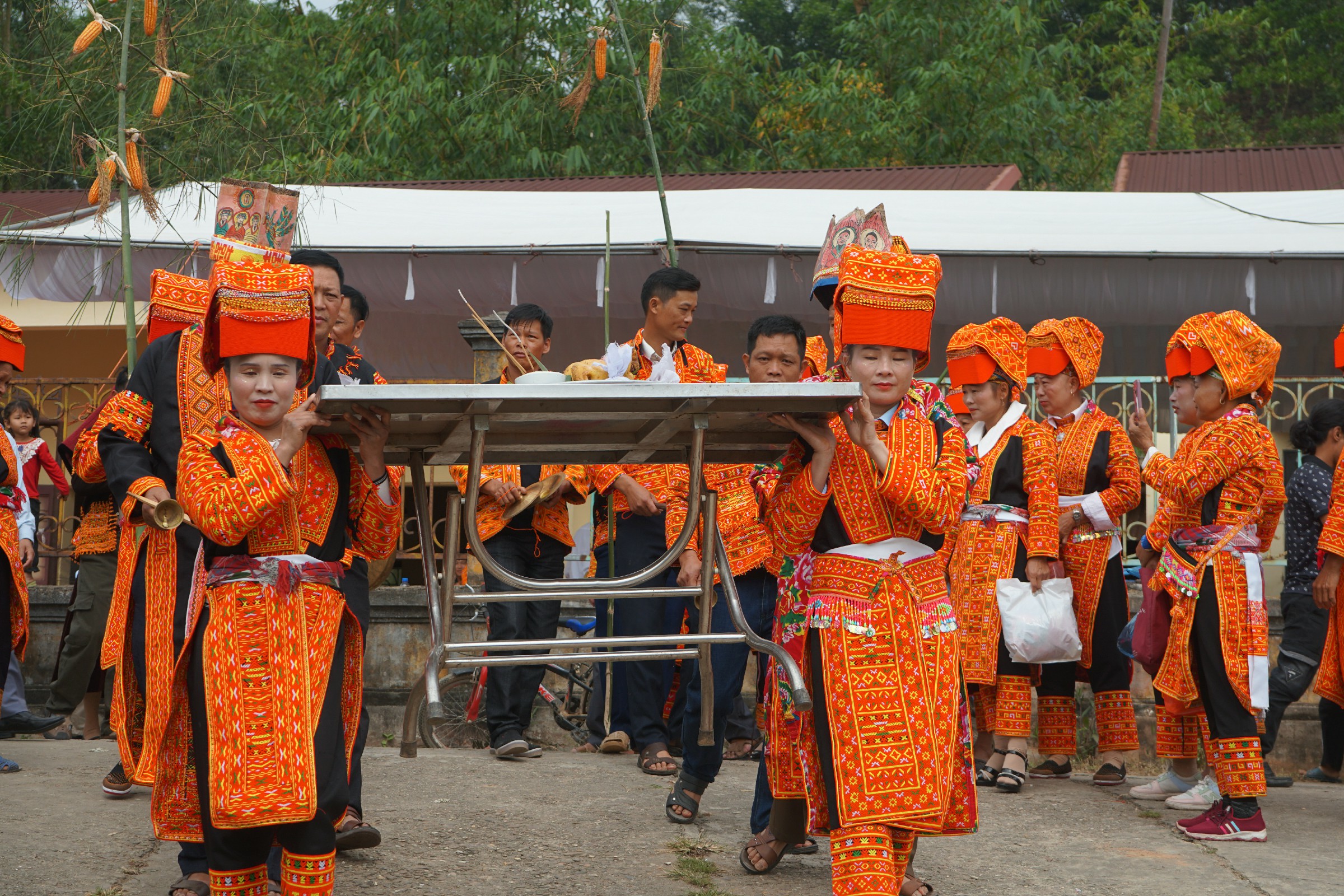 Nghi lễ cúng các thần linh, thần rừng, thần nông đã xong, dân làng ra bãi tra hạt ngô, hạt lúa. Đi đầu là các thầy cúng, tiếp theo là đại biểu và dân làng đi theo hàng trong tiếng nhạc, tiếng kèn của người Hoa tiến ra bãi đất rộng để tra hạt giống. Trên bãi đất rộng có 5 cặp nam và nữ trong trang phục truyền thống được trang bị 5 cây tre đực vót nhọn 1 đầu. Nữ đeo túi đựng hạt lúa, hạt ngô, hạt đỗ…. đã được làm lễ, thực hiện nghi thức tra hạt trên bãi đất rộng đã được phát cây dọn cỏ. Các chàng trai thực hiện nghi thức quốc đất, chọc lỗ để tra hạt, nữ theo sau tra hạt ngô, lúa. Sau lễ tra hạt dân làng lại kéo về trung tâm hội nơi có bàn thờ Bàn Vương, các vị thần linh của làng để làm lễ tạ ơn. Lễ gồm 1 gà trống, cỗ xôi nếp cái, hương hoa, rượu, nước, trầu cau, tiền, vàng. Một người đại diện là người cao tuổi của làng cùng các thầy ra làm lễ tạ ơn thần linh, kết thúc phần lễ cầu mùa.
