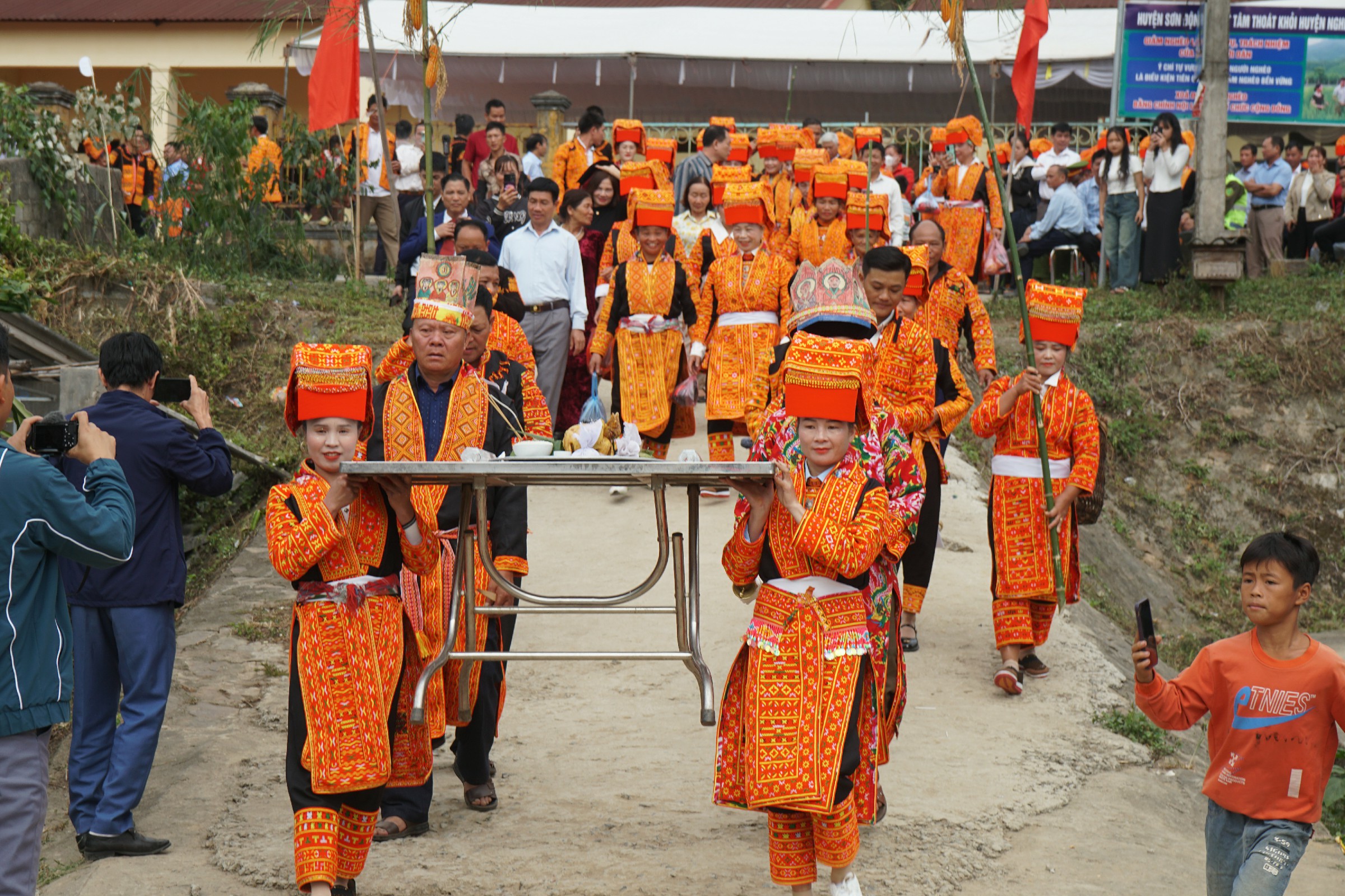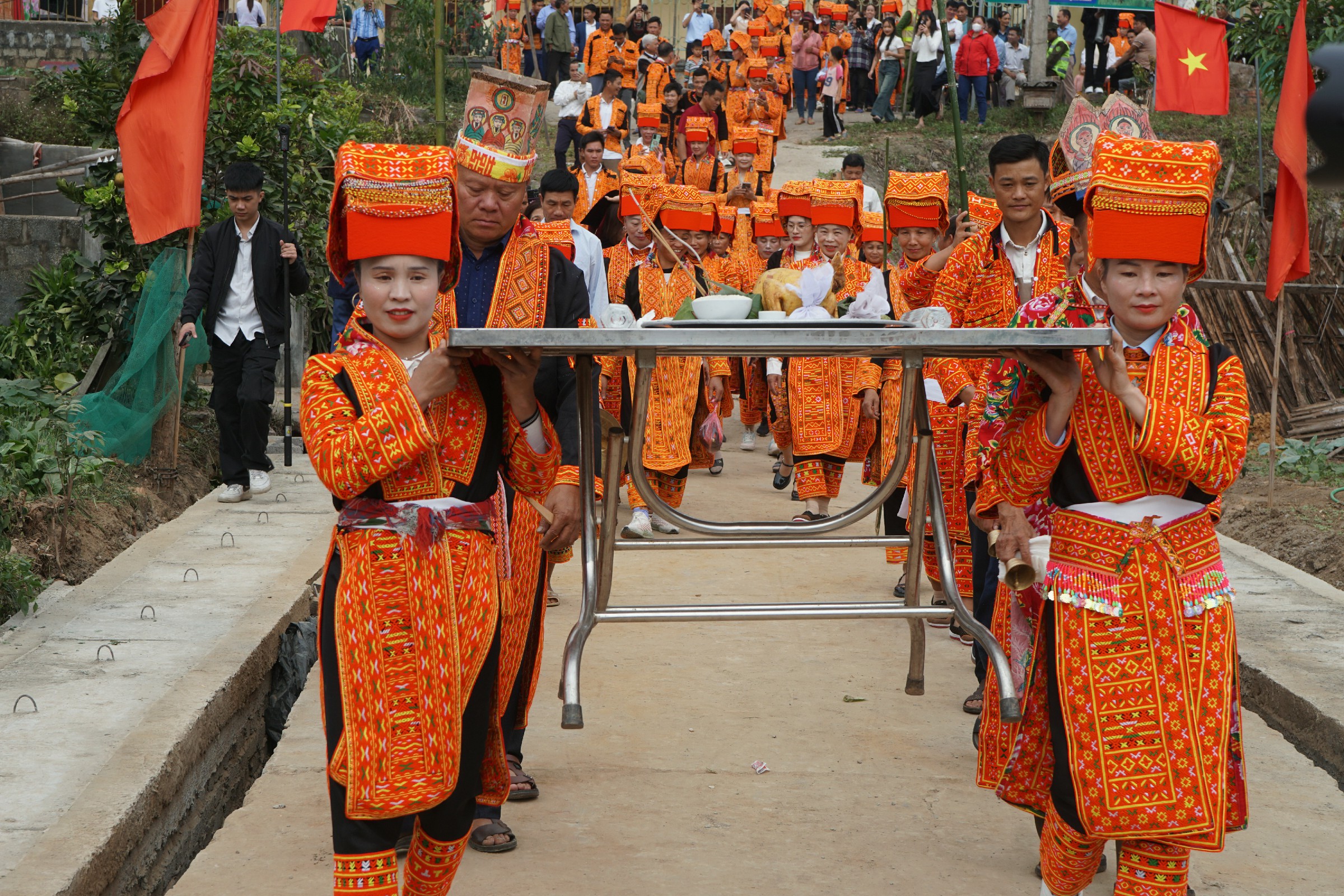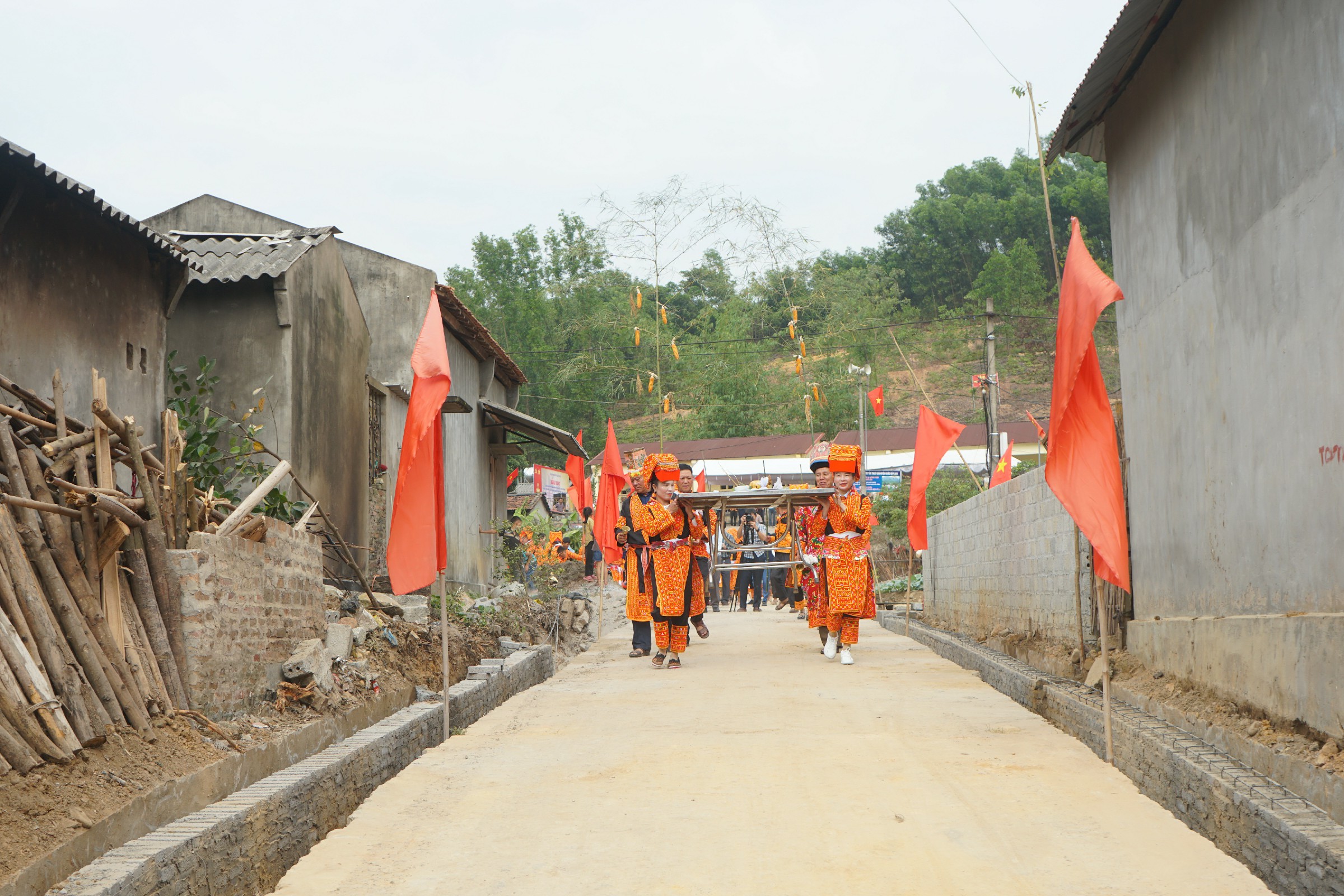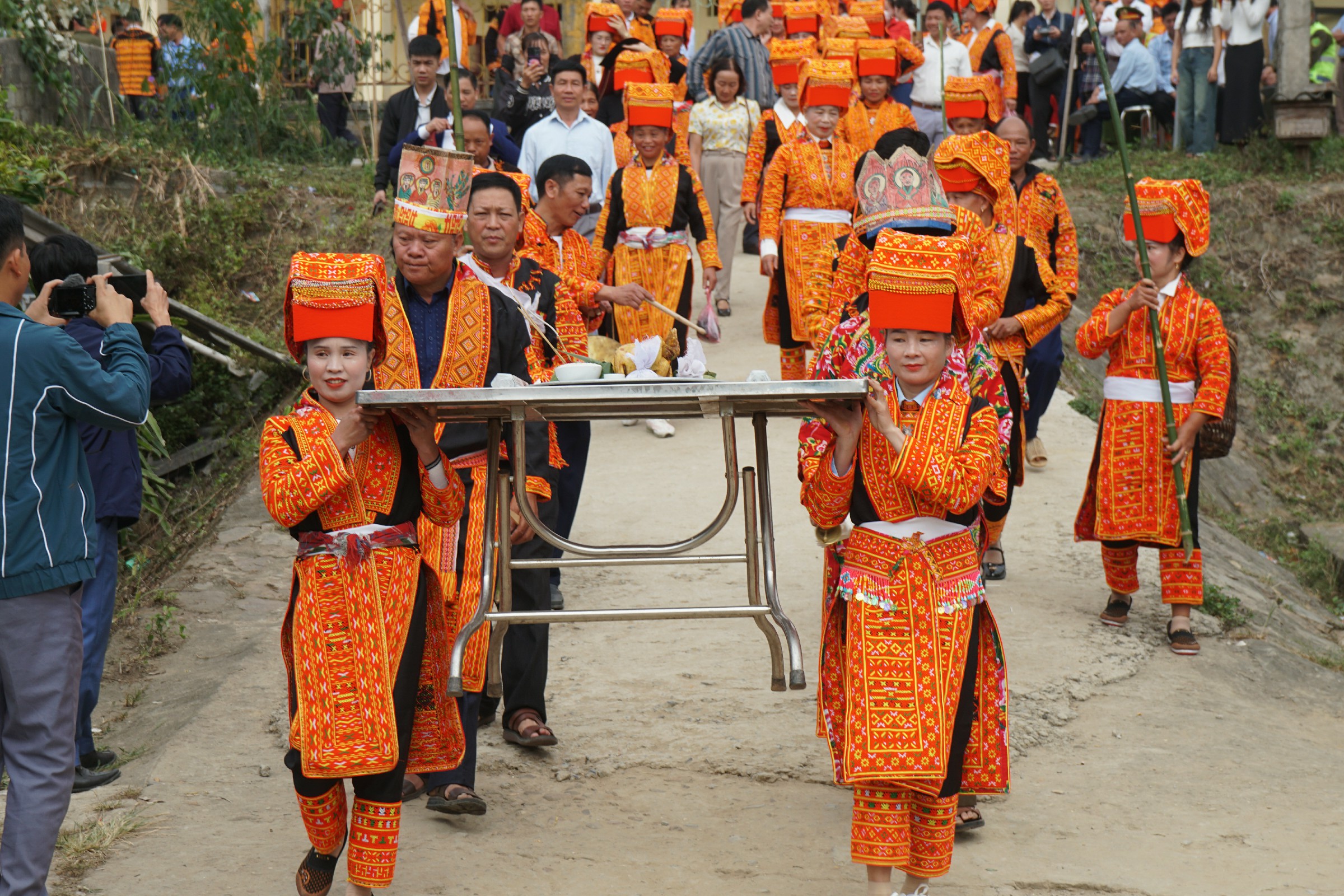 Nghi lễ cúng các thần linh, thần rừng, thần nông đã xong, dân làng ra bãi tra hạt ngô, hạt lúa. Đi đầu là các thầy cúng, tiếp theo là đại biểu và dân làng đi theo hàng trong tiếng nhạc, tiếng kèn của người Hoa tiến ra bãi đất rộng để tra hạt giống. Trên bãi đất rộng có 5 cặp nam và nữ trong trang phục truyền thống được trang bị 5 cây tre đực vót nhọn 1 đầu. Nữ đeo túi đựng hạt lúa, hạt ngô, hạt đỗ…. đã được làm lễ, thực hiện nghi thức tra hạt trên bãi đất rộng đã được phát cây dọn cỏ. Các chàng trai thực hiện nghi thức quốc đất, chọc lỗ để tra hạt, nữ theo sau tra hạt ngô, lúa. Sau lễ tra hạt dân làng lại kéo về trung tâm hội nơi có bàn thờ Bàn Vương, các vị thần linh của làng để làm lễ tạ ơn. Lễ gồm 1 gà trống, cỗ xôi nếp cái, hương hoa, rượu, nước, trầu cau, tiền, vàng. Một người đại diện là người cao tuổi của làng cùng các thầy ra làm lễ tạ ơn thần linh, kết thúc phần lễ cầu mùa.